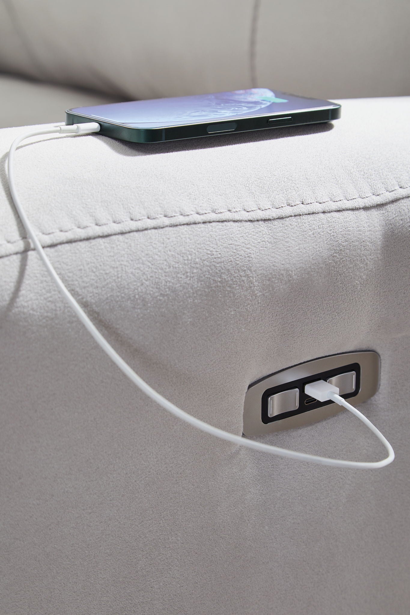 Smart, clean and ultra modern, this power reclining sectional is utterly in vogue. You'll love its indulgent cushions and contemporary bustle back styling. The sumptuous fabric, accentuated with contrasting welting, easily blends with your decor. And with reclining at the press of a button, this modular sectional proves chic design and superb comfort go hand in hand.